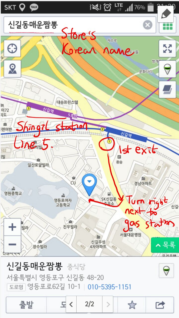 Exit 2, Sangsu Station. Walk towards Hongik university (Paris baguette on your right). If you see Edya coffee across the road you are at the right spot. Stay on the same sidewalk and walk towards Hongik Univ towards Hollys Coffee (Kodachaya is beside).